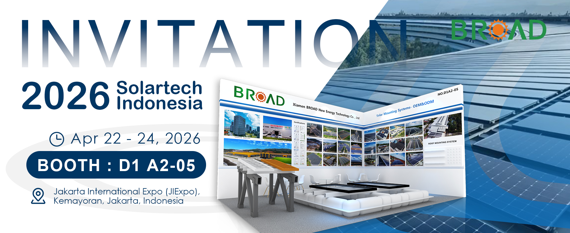 Como proveedor líder de sistemas de montaje solar, Broad siempre juega un papel activo en la industria de la energía solar fotovoltaica. Al participar en exhibiciones de energía solar en todo el mundo, Broad puede presentar mejor nuestros sistemas de montaje solar.